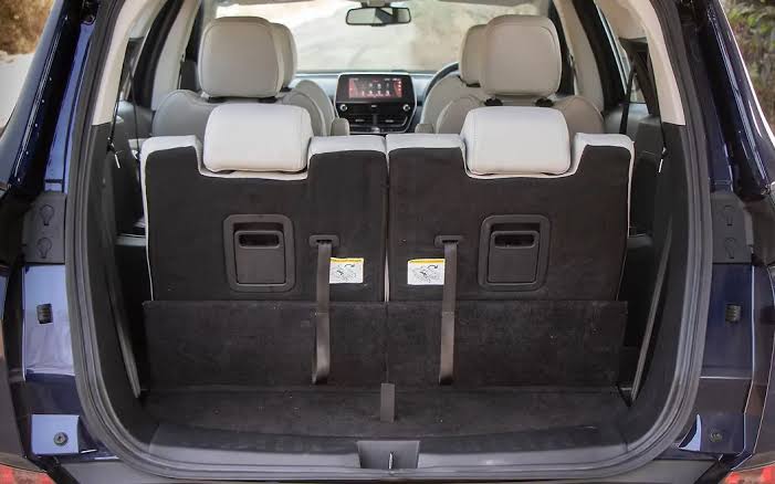 In Tata Safari 2025 you get adjustable and flexible boot space. If 3 rows are standing upright then you get boot space of only (73) liters. If you fold the 3rd row then you get boot space of (447) liters. and if you fold both 2nd and 3rd rows then you get boot space of 910 liters